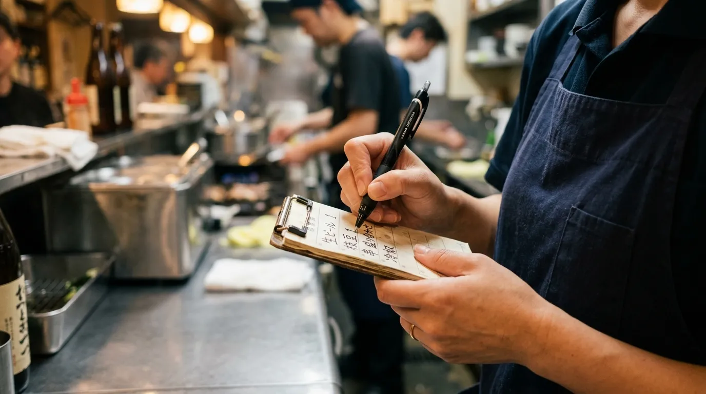 注文時にはお客様の前で必ず「復唱確認」を行い、その場で齟齬をなくす工程をルーティン化しましょう。また、手書き伝票をキッチンに渡したあと、最終的に会計時のレジ入力とどう連動させるかが、売上管理の正確性を左右する肝となります。