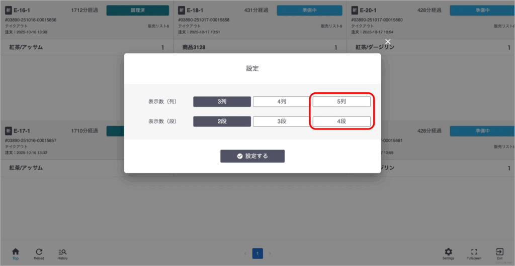 キッチンモニターの表示数に「5列」・「4段」を追加しました。
