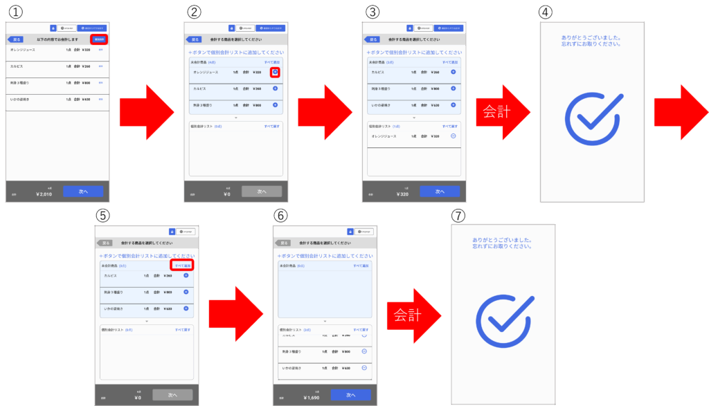飲食会計モードで会計を分けて行うことができる個別会計機能を追加しました。